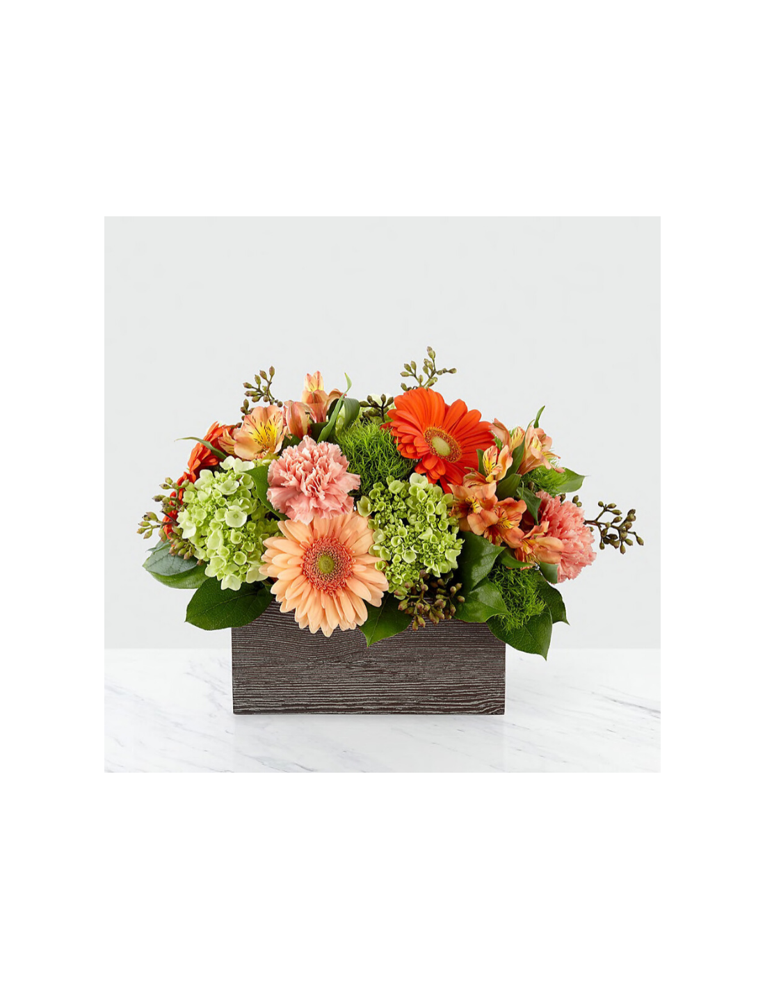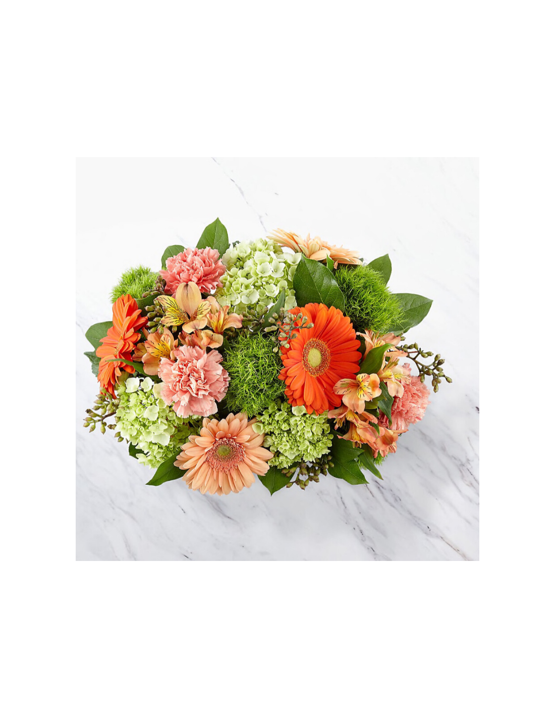 Eccezionale centrotavola con fiori misti sui toni caldi dell'arancione.