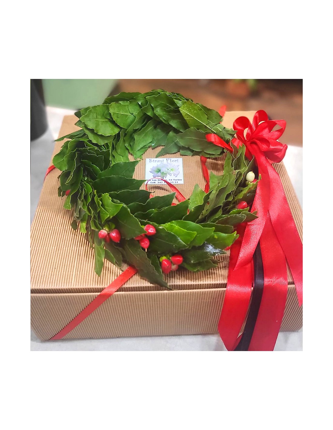 Coroncina di laurea con bacche in confezione regalo.