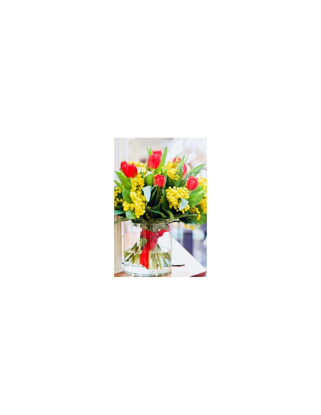 appariscente bouquet di mimosa e tulipani, rendi speciale il giorno della festa della donna con un omaggio assai gradito.
