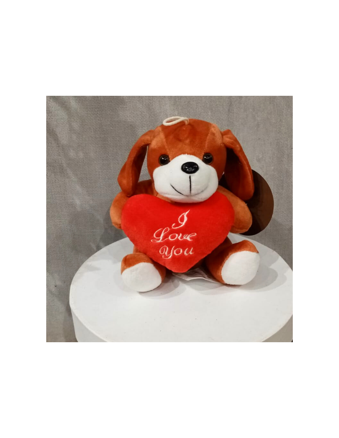 Accompagna il tuo mazzo di rose rosse con un bellissimo peluche di cane con cuore I Love You: se ne innamorerà!