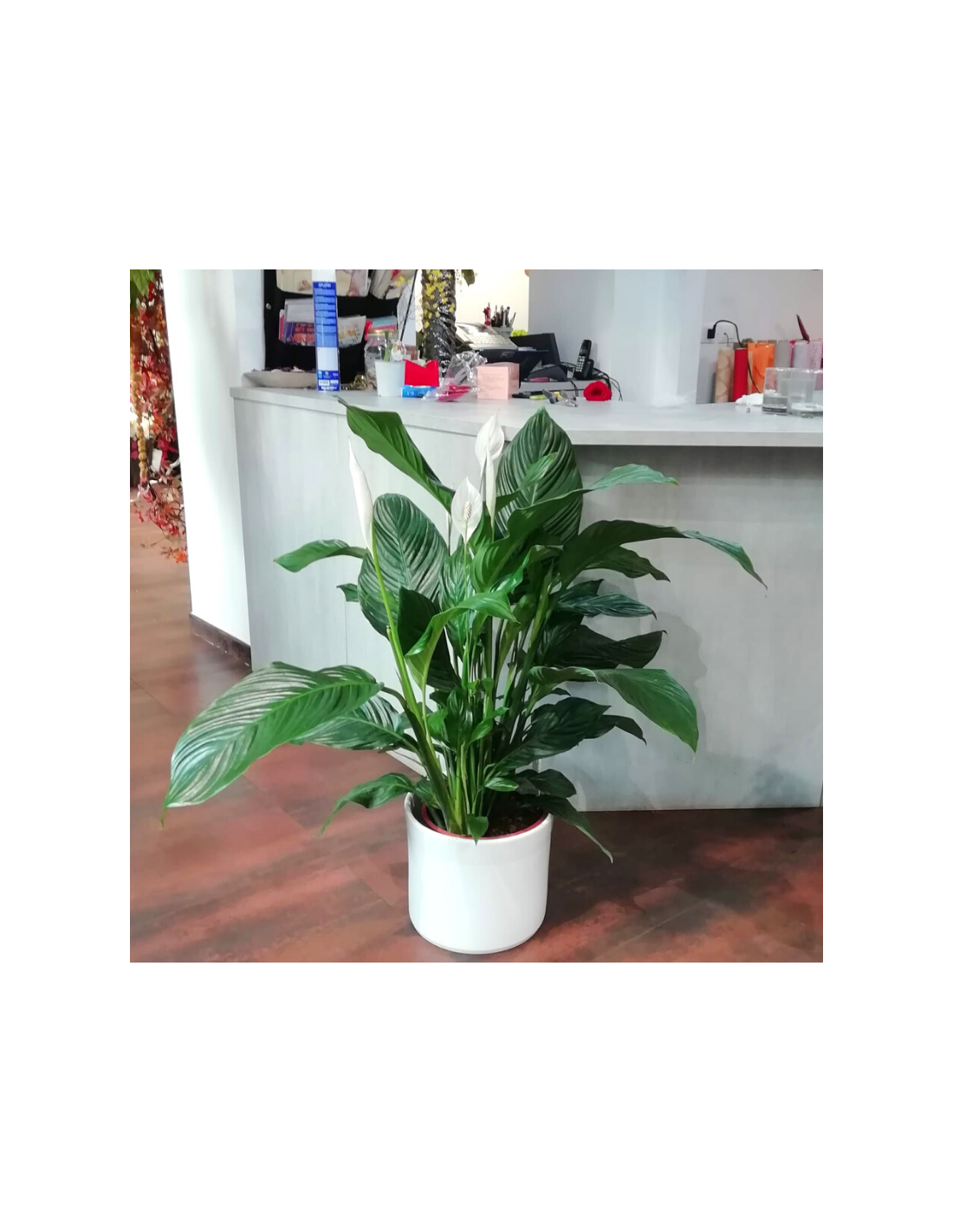 Bellissima pianta di Spathiphyllum idea regalo perfetta per appartamenti: è caratterizzata da lunghe foglie generalmente lanceolate. In alcuni casi e condizioni produce foglie di color bianco candido, dette spate.