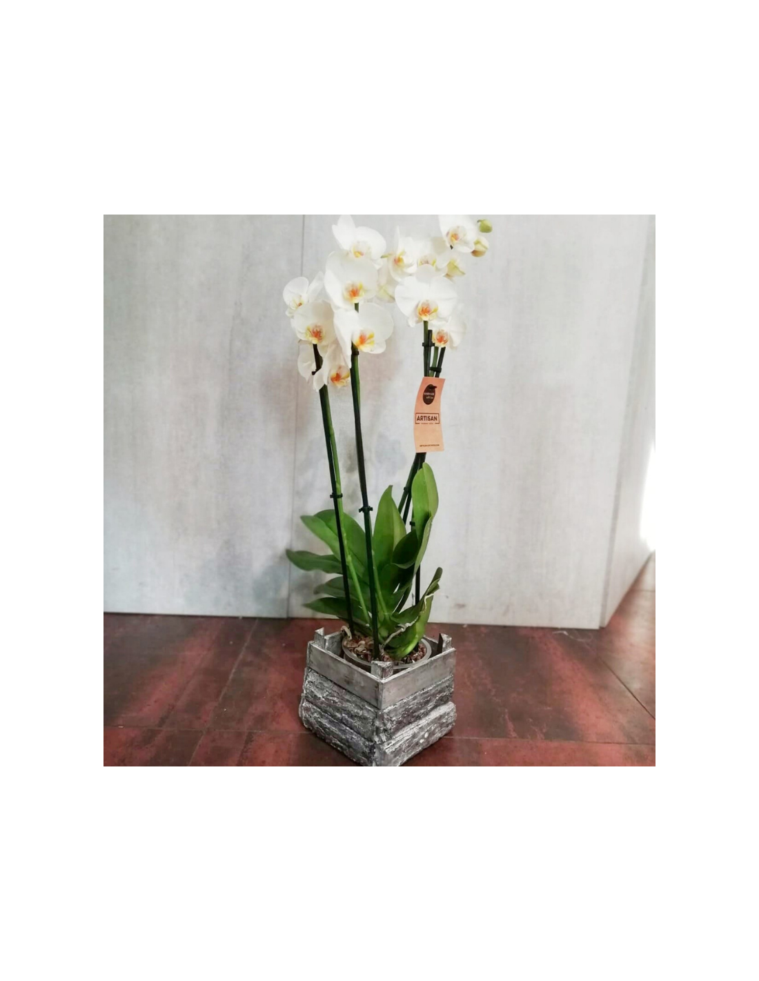 Elegante e delicata pianta di orchidea bianca con due o tre rami delle migliori qualità,sapientemente confezionata con toni chiari. Ideale per qualsiasi tipo di occasione, amore, amicizia, ringraziamento, compleanno.