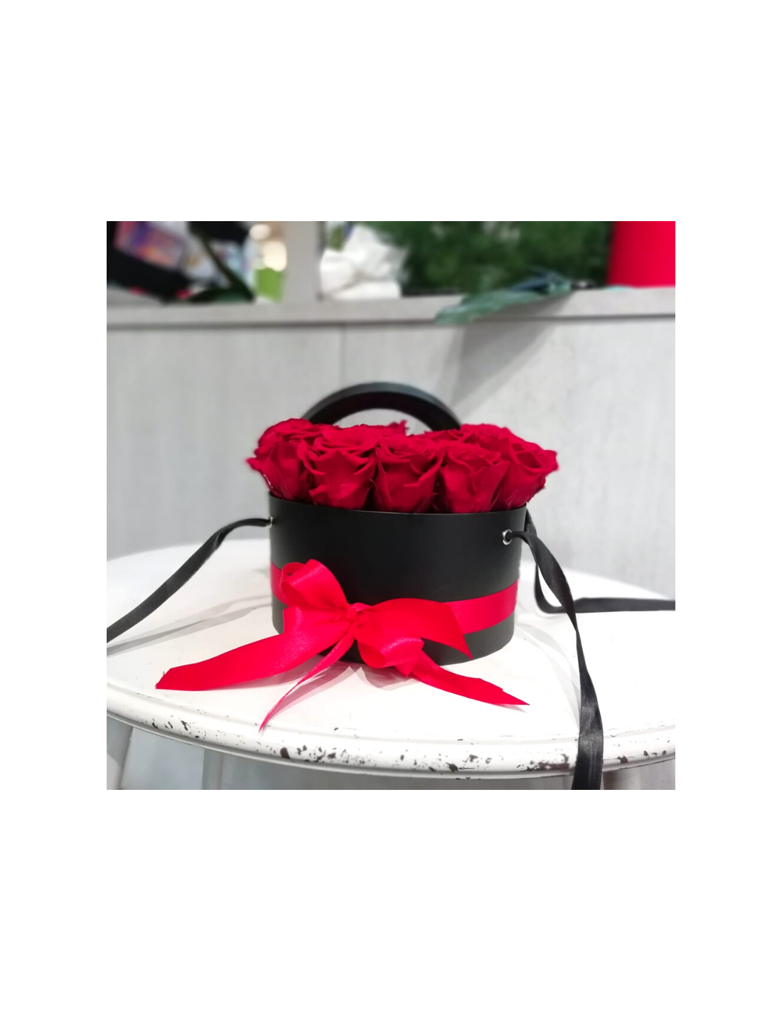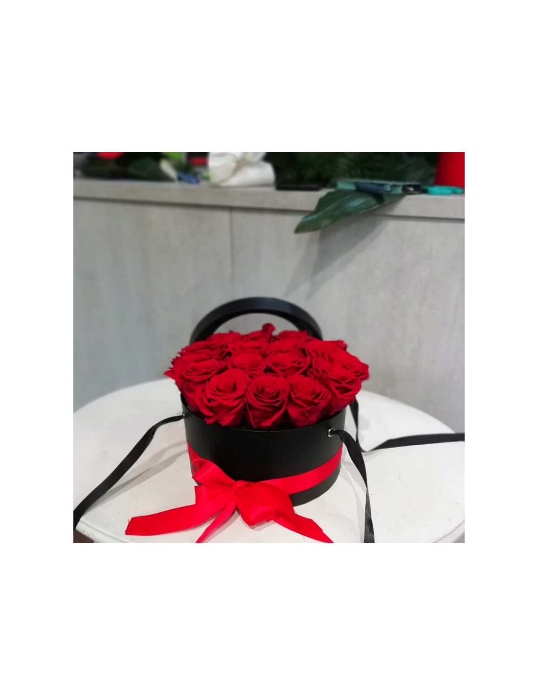 Splendida flowerbox con 16 rose stabilizzate e fiocco in box nera, elegante e raffinata per regalare un momento di emozione alla tua metà. Qualità garantita per 36 mesi.